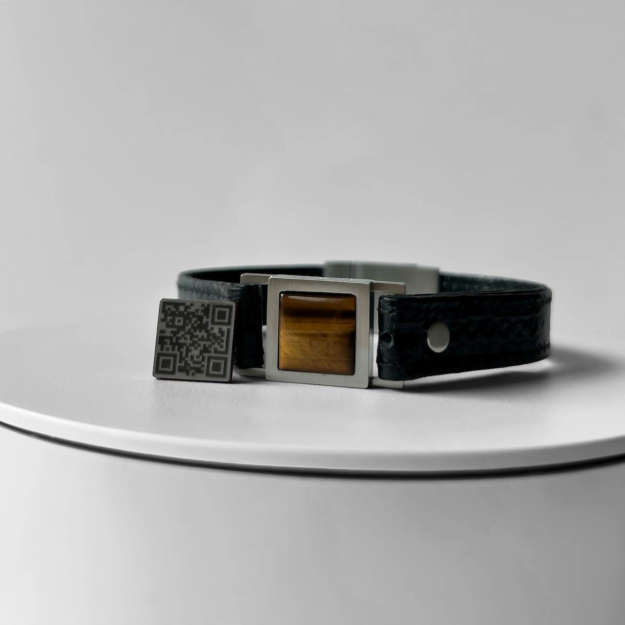 Unique patented design, hypoallergenic steel, exotic leather craftsmanship.