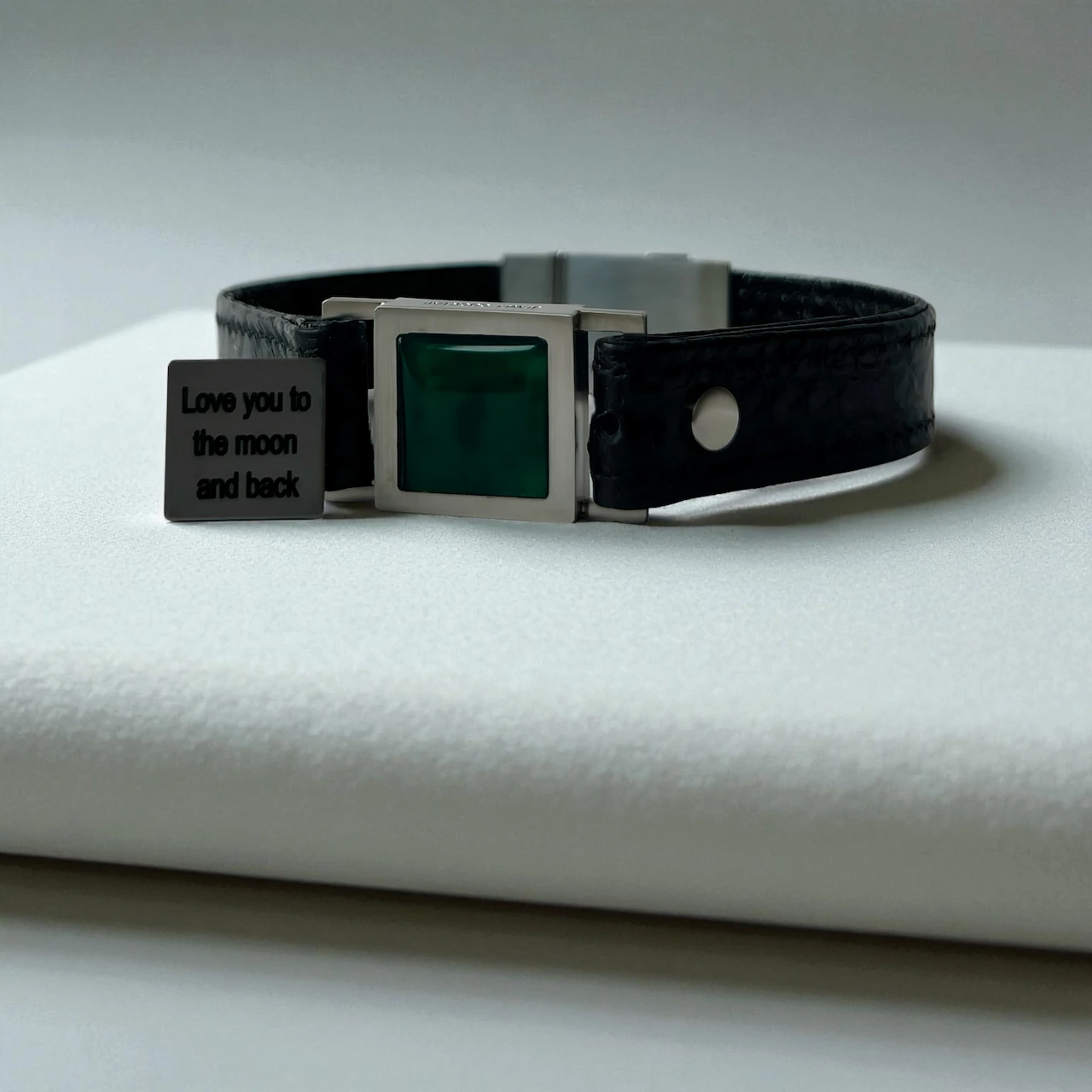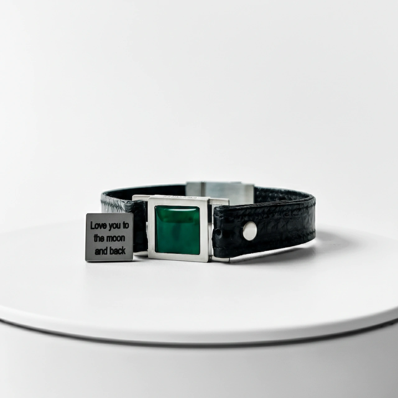 Bracelet with natural Green Agate — a stone of vitality, growth, and renewal. Hidden message inside.