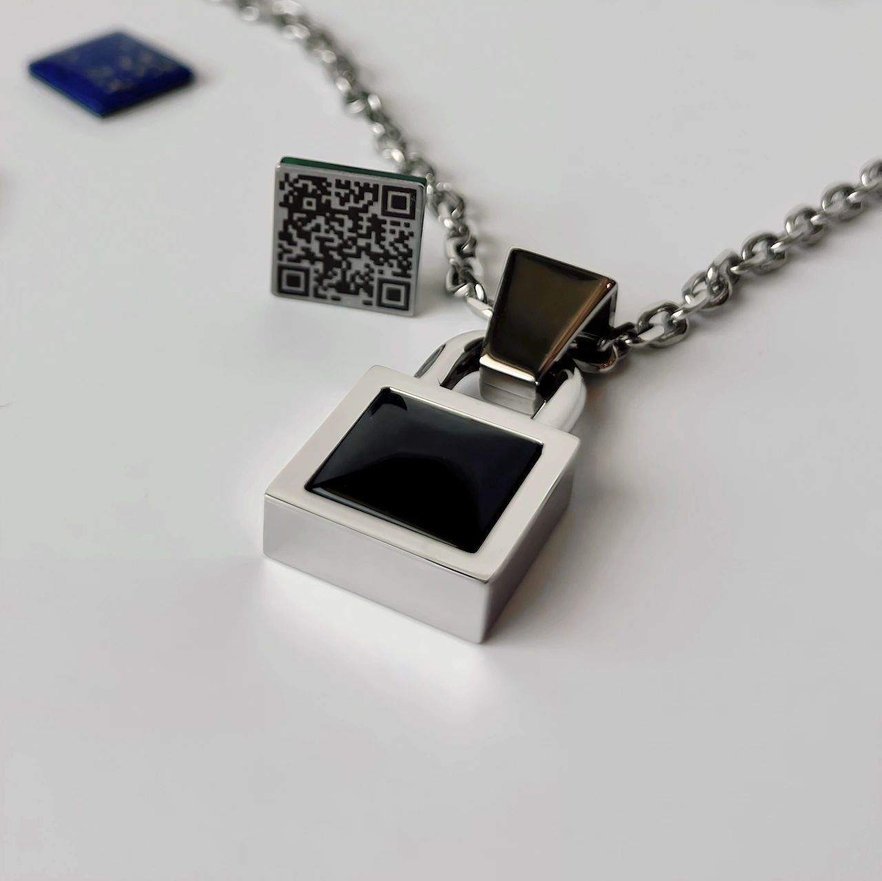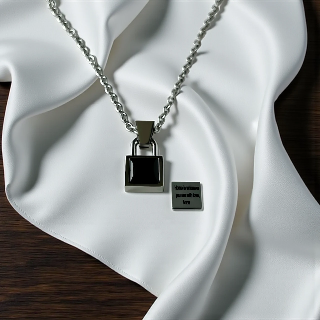Men Pendant with natural Black Agate — a symbol of masculine power and protection. Hidden message inside.