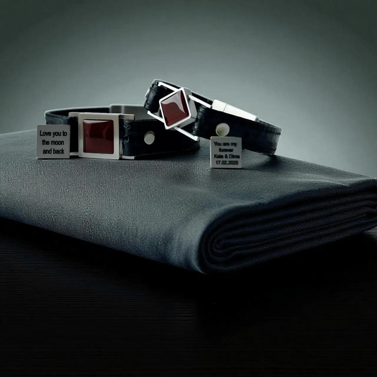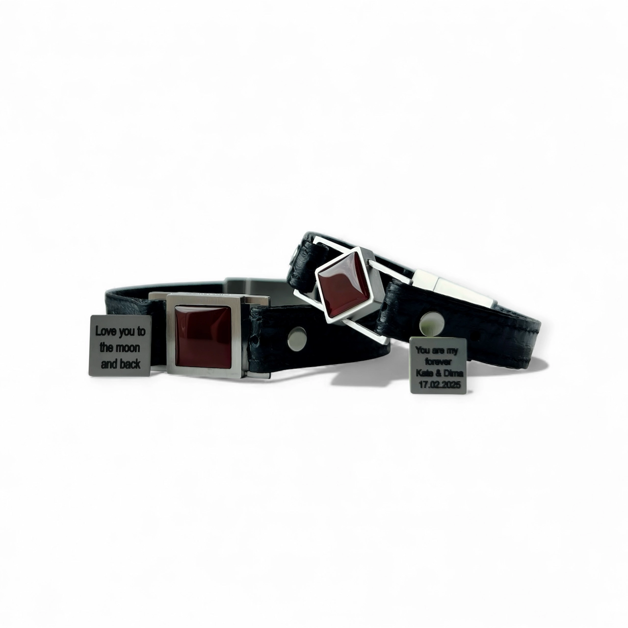 Set of bracelets with natural Red Agate — a symbol of passion and love. Hidden messages inside.