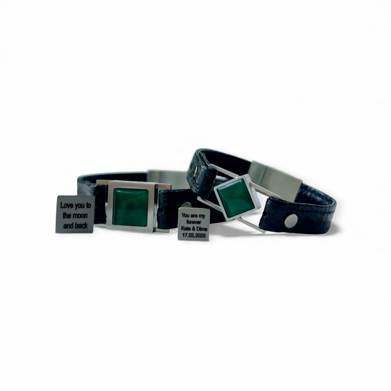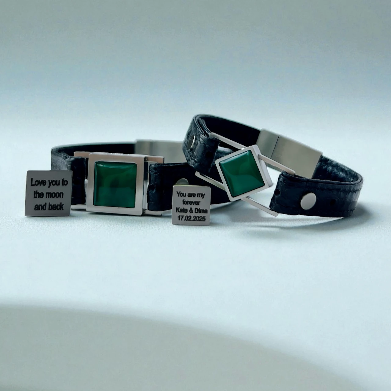 Set of bracelets with natural Green Agate — a symbol of vitality, renewal, and shared prosperity. Hidden messages inside.