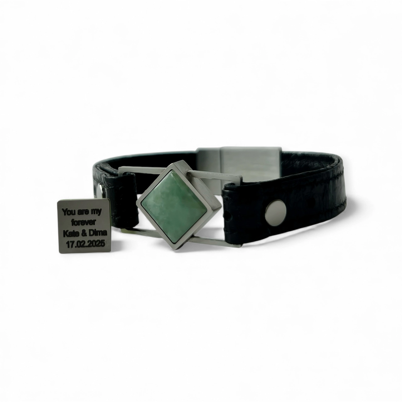 Women bracelet with natural Green Aventurine and a hidden message inside.